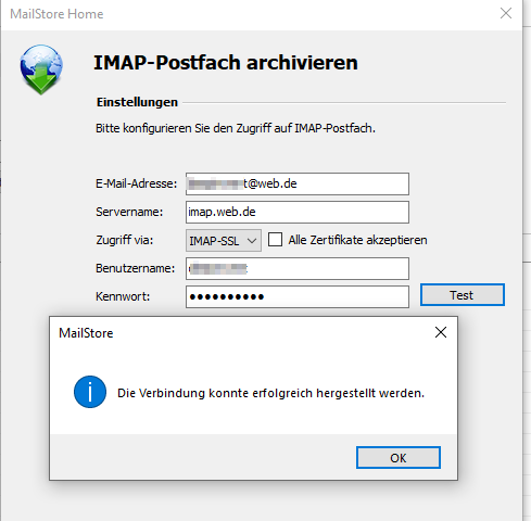 web.de benötigt auch die aktuellen SSL-Versionen 1.2 oder 1.3. Dafür muss die aktuelle Mailstore-Home Version 22.2.1.20836 eingesetzt werden. Bitte prüfen und ggf. updaten, vorher unbedingt eine Datensicherung erstellen.